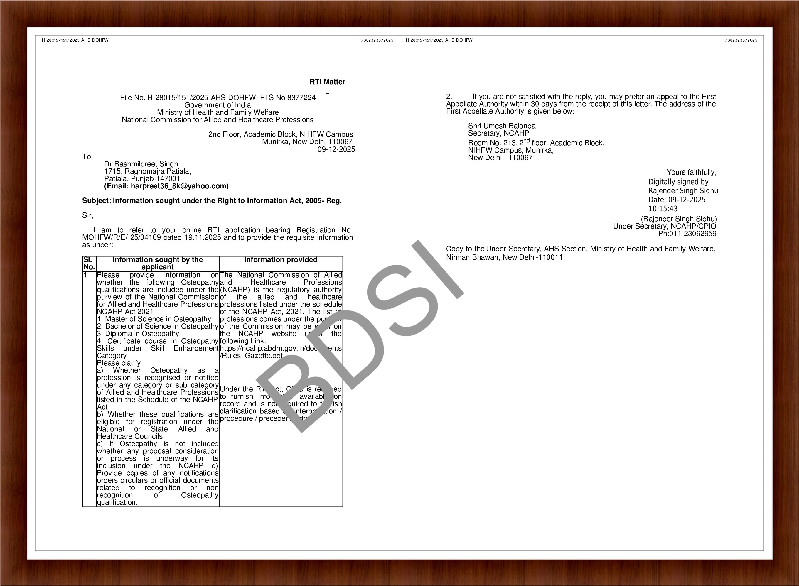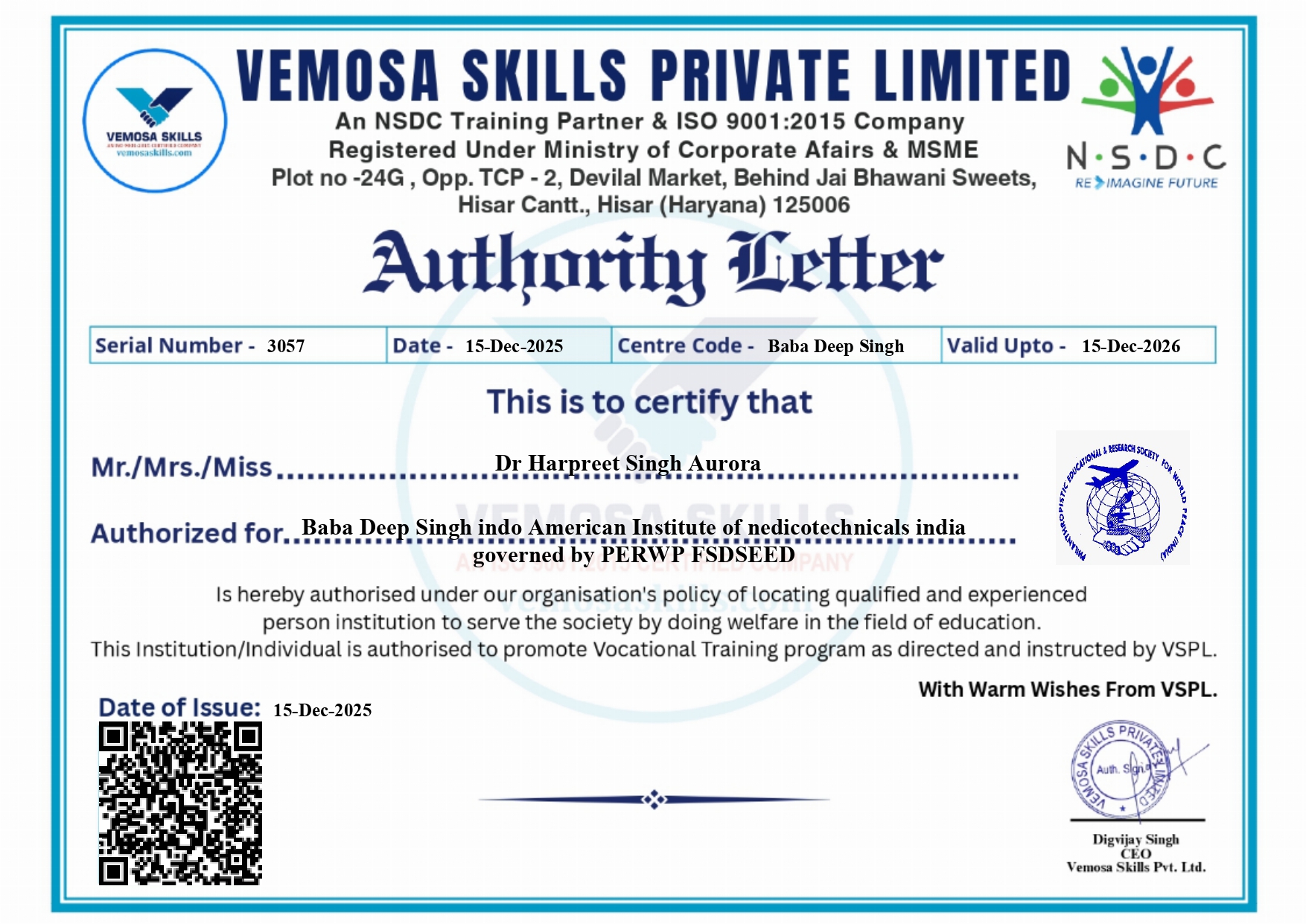 Authorization/Govt Letters